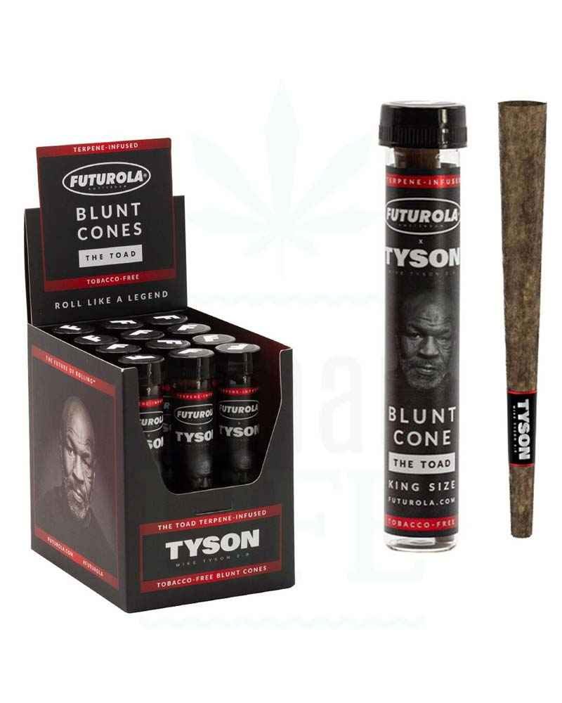Vi presenterar Tyson 2.0 x Futurola Terpene Infused Tobacco-Free Blunt Cones. Dessa blunts är tillverkade av hampa och fri från både tobak & nikotin.